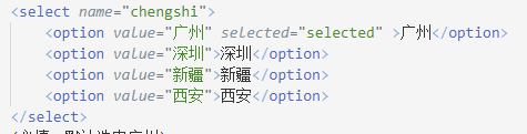 说明一个列表框,“option”是可选择的选项,selected为首选项。